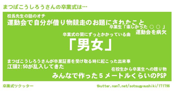 | 胡散臭い通販商品みたいなあだ名 | 『必ず成功するブレスレット…その名も「まつばこうしろう」』 |