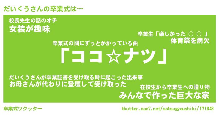 | 意味不明あだ名 | 『ペロリンだいくう』『永久保存だいくう』 |
