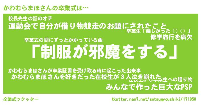 | ヘコむあだ名 | 『かわもー』『牛乳』『かわを』 |