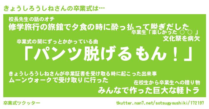 | 胡散臭い通販商品みたいなあだ名 | 『モテモテ間違いなし霊験あらたかなお札…その名も「きょうしろうしね」』 |
