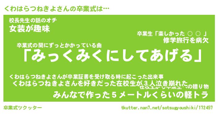 | 伝説のあだ名 | 『伝説のスナイパーくわはらつねきよ』 |