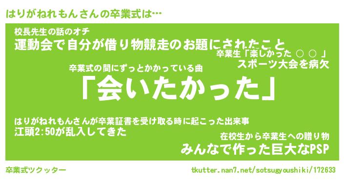 | ヘコむあだ名 | 『はりっふぃ~』『つくし』『はりを』 |