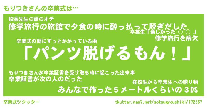 | 意味不明あだ名 | 『ペロリンもりつき』『永久保存もりつき』 |