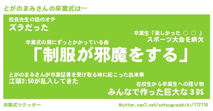 | 胡散臭い通販商品みたいなあだ名 | 『億万長者になれるブレスレット…その名も「とがのまみ」』 |