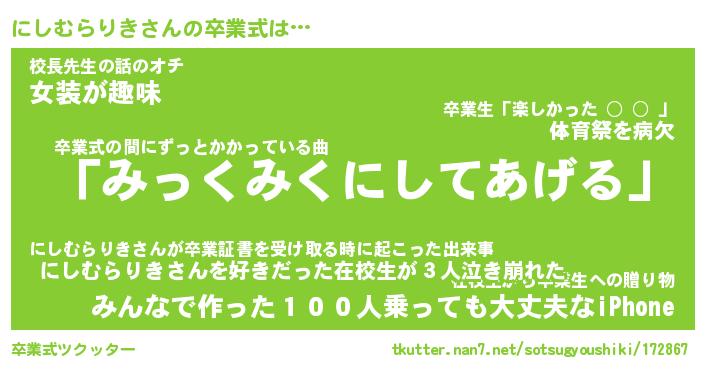 | 胡散臭い通販商品みたいなあだ名 | 『必ず成功する水晶球…その名も「にしむらりき」』 |