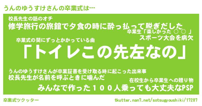| 伝説のあだ名 | 『伝説のスナイパーうんのゆうすけ』 |