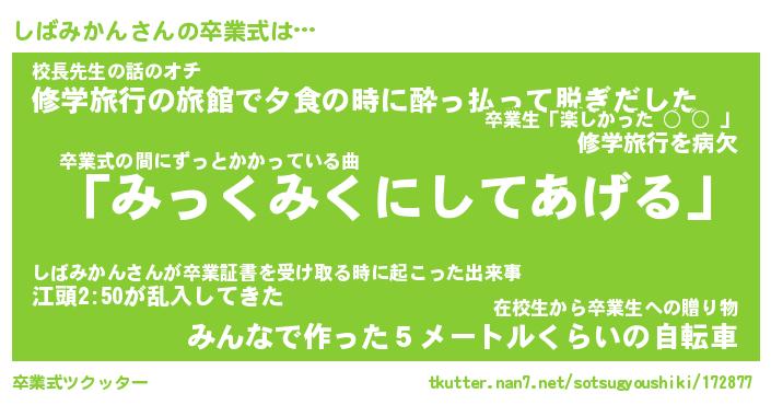 | 伝説のあだ名 | 『伝説のスナイパーしばみかん』 |