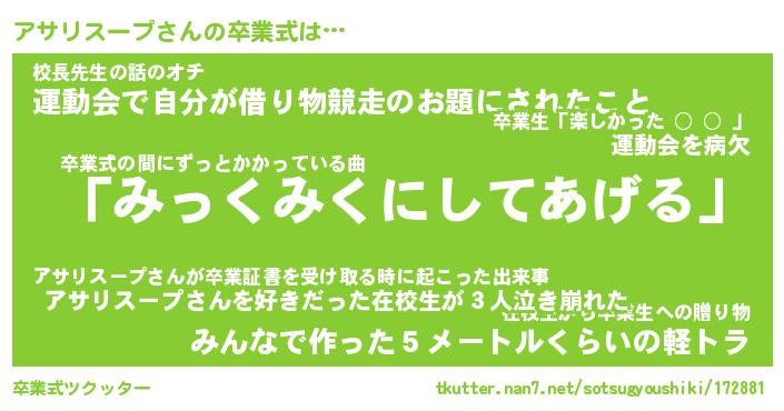 | 胡散臭い通販商品みたいなあだ名 | 『必ず成功する霊験あらたかなお札…その名も「アサリスープ」』 |