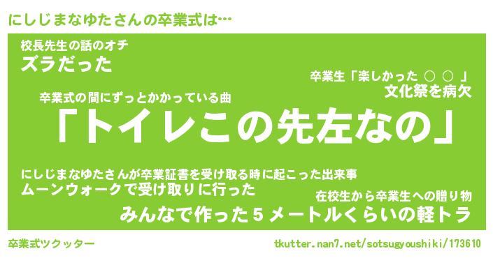 | 胡散臭い通販商品みたいなあだ名 | 『必ず成功するブレスレット…その名も「にしじまなゆた」』 |