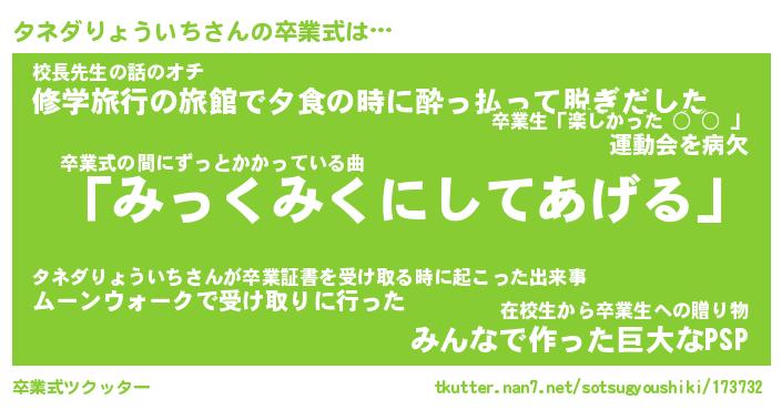 | ヘコむあだ名 | 『タネっふぃ~』『つくし』『タネお』 |