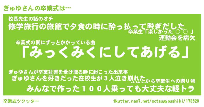 | 胡散臭い通販商品みたいなあだ名 | 『必ず成功する霊験あらたかなお札…その名も「ぎゅゆ」』 |