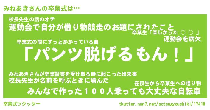 | 意味不明あだ名 | 『ペロリンみねあき』『永久保存みねあき』 |