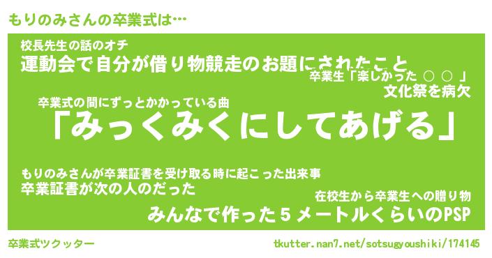 | 胡散臭い通販商品みたいなあだ名 | 『必ず成功するブレスレット…その名も「もりのみ」』 |