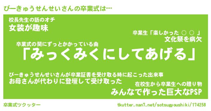 | 胡散臭い通販商品みたいなあだ名 | 『必ず成功する霊験あらたかなお札…その名も「びーきゅうせんせい」』 |