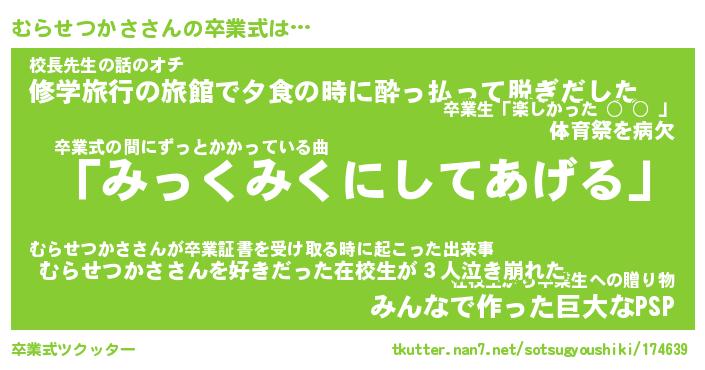 | 男性向けラノベタイトル風あだ名 | 『むらせつかさの憂鬱』 |