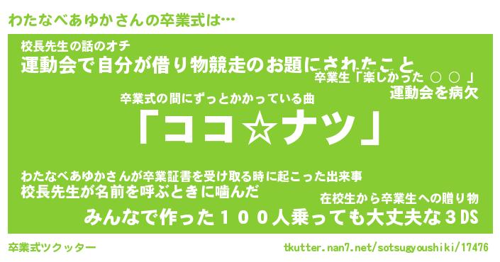 | ヘコむあだ名 | 『わたふぇ~』『つくし』 |