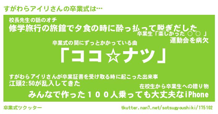 | 胡散臭い通販商品みたいなあだ名 | 『モテモテ間違いなし霊験あらたかなお札…その名も「すがわらアイリ」』 |