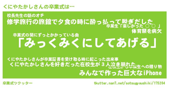 | 胡散臭い通販商品みたいなあだ名 | 『必ず成功する霊験あらたかなお札…その名も「くにやたかし」』 |