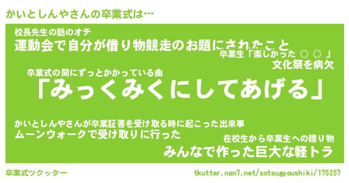 | 胡散臭い通販商品みたいなあだ名 | 『必ず成功する水晶球…その名も「かいとしんや」』 |