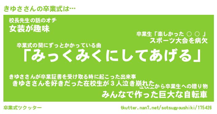 | 胡散臭い通販商品みたいなあだ名 | 『必ず成功する霊験あらたかなお札…その名も「きゆさ」』 |