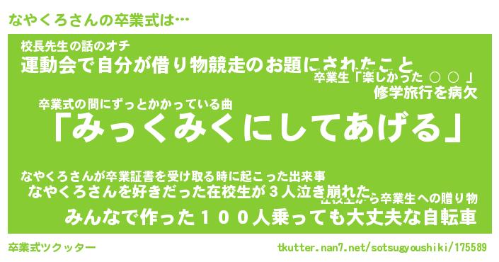 | 胡散臭い通販商品みたいなあだ名 | 『必ず成功するブレスレット…その名も「なやくろ」』 |