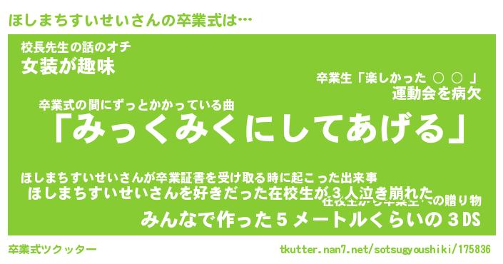 | 胡散臭い通販商品みたいなあだ名 | 『必ず成功するブレスレット…その名も「ほしまちすいせい」』 |