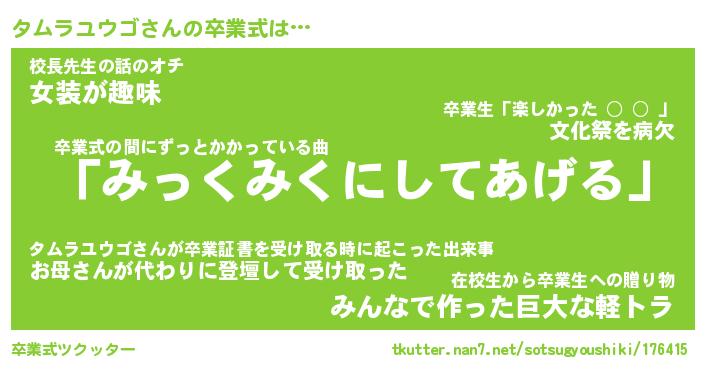 | 男性向けラノベタイトル風あだ名 | 『タムラユウゴの憂鬱』 |