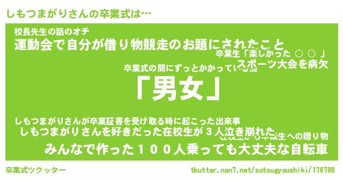 | 男性向けラノベタイトル風あだ名 | 『しもつまがりの憂鬱』 |