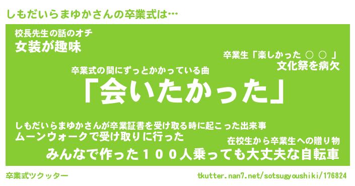 | 伝説のあだ名 | 『不死鳥のスナイパーしもだいらまゆか』 |