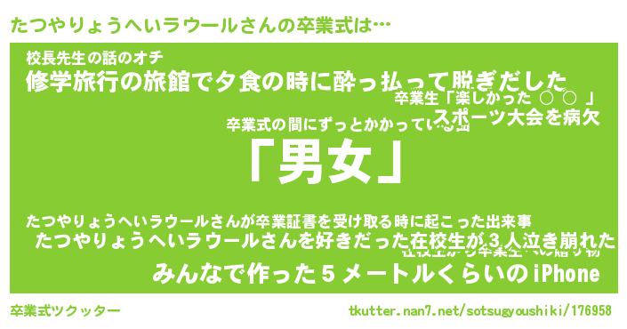 | ヘコむあだ名 | 『たつにー』『なまこ酢』『たつっぺ』 |