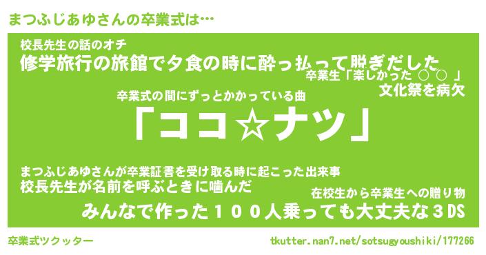 | 恥ずかしいあだ名 | 『プリティーまつふじあゆ』『まつっちょ』 |