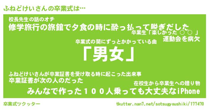 | ヘコむあだ名 | 『ふねにー』『なまこ酢』『ふね太郎』 |