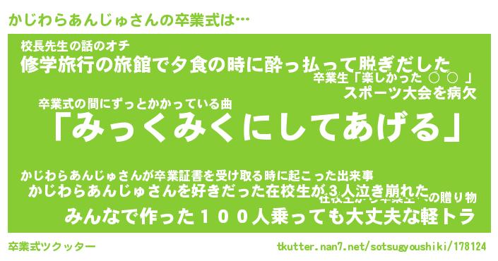 | 胡散臭い通販商品みたいなあだ名 | 『必ず成功するブレスレット…その名も「かじわらあんじゅ」』 |