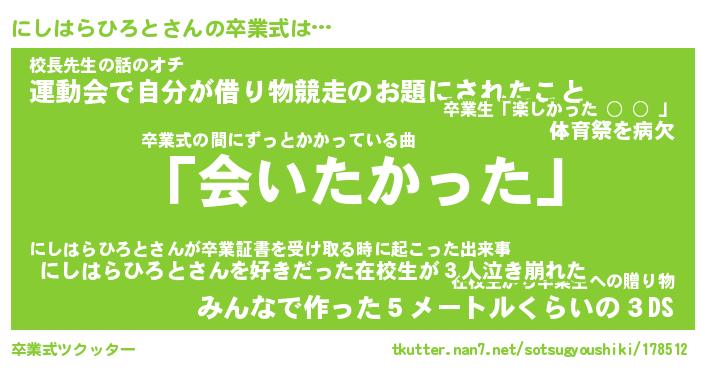 | 恥ずかしいあだ名 | 『プリティーにしはらひろと』『にしちん』 |
