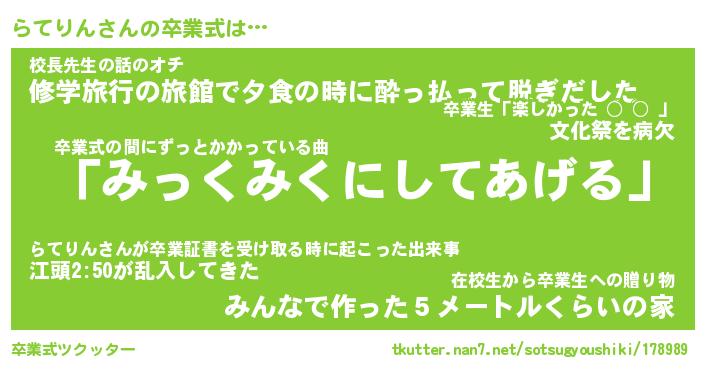 | 意味不明あだ名 | 『ペロリンらてりん』『永久保存らてりん』 |