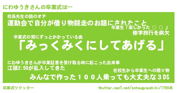 | 胡散臭い通販商品みたいなあだ名 | 『必ず成功するブレスレット…その名も「にわゆうき」』 |