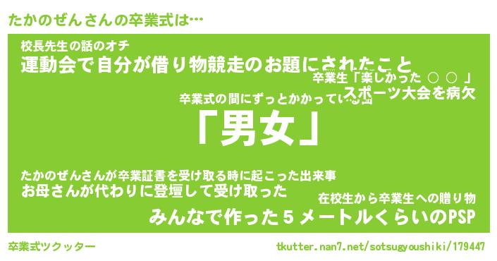 | 男性向けラノベタイトル風あだ名 | 『たかのぜんの憂鬱』 |