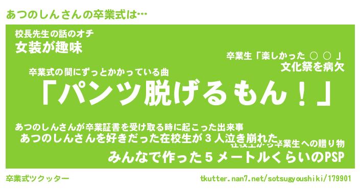 | 男性向けラノベタイトル風あだ名 | 『あつのしんの憂鬱』 |