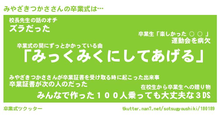 | 胡散臭い通販商品みたいなあだ名 | 『必ず成功する霊験あらたかなお札…その名も「みやざきつかさ」』 |