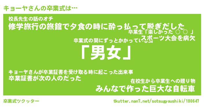 | 意味不明あだ名 | 『ペロリンキョーヤ』『永久保存キョーヤ』 |