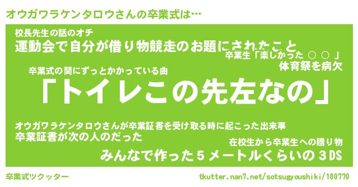 | 伝説のあだ名 | 『伝説のスナイパーオウガワラケンタロウ』 |