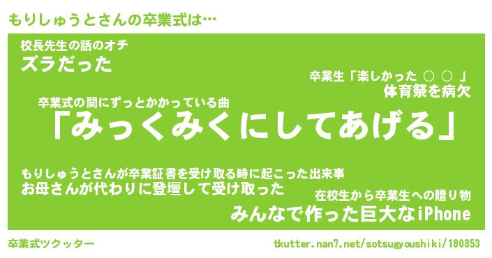 | 伝説のあだ名 | 『伝説のスナイパーもりしゅうと』 |