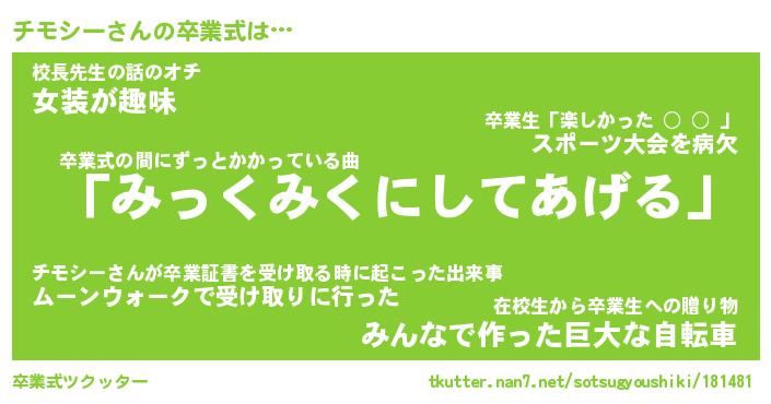 | 意味不明あだ名 | 『ペロリンチモシー』『永久保存チモシー』 |