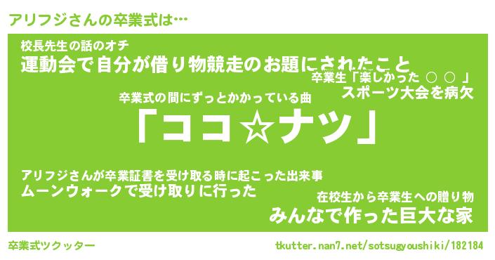 | 意味不明あだ名 | 『ペロリンアリフジ』『永久保存アリフジ』 |