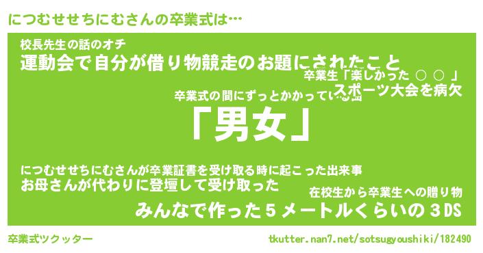 | 胡散臭い通販商品みたいなあだ名 | 『必ず成功するブレスレット…その名も「につむせせちにむ」』 |