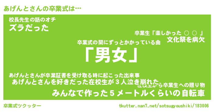 | 男性向けラノベタイトル風あだ名 | 『あげんとの憂鬱』 |