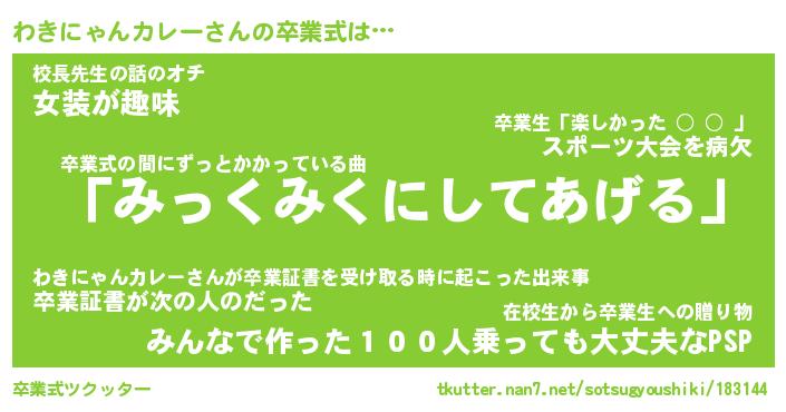 | 胡散臭い通販商品みたいなあだ名 | 『必ず成功するブレスレット…その名も「わきにゃんカレー」』 |