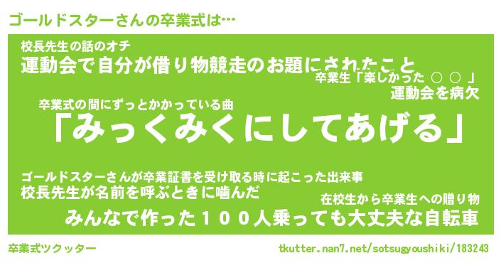 | 胡散臭い通販商品みたいなあだ名 | 『必ず成功する霊験あらたかなお札…その名も「ゴールドスター」』 |