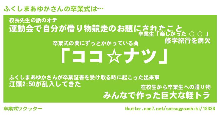 | 伝説のあだ名 | 『不死鳥のスナイパーふくしまあゆか』 |