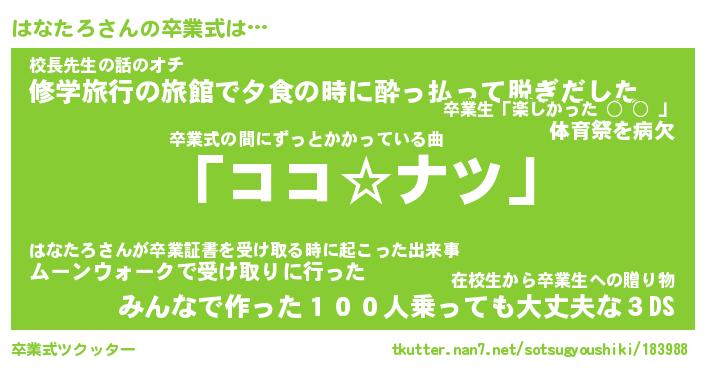 | 意味不明あだ名 | 『ペロリンはなたろ』『永久保存はなたろ』 |